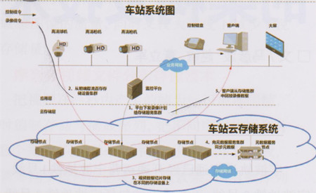 軌道交通云存儲系統(tǒng)采用單站點一套云存儲系統(tǒng)的建設(shè)方式,多個車站形成多云的形態(tài),在系統(tǒng)正常的情況下,每套云存儲系統(tǒng)各自存儲站內(nèi)的高清視頻,當(dāng)某個站點整套云存儲系統(tǒng)出現(xiàn)故障時,支持鄰站或控制中心的云存儲系統(tǒng)自動接管故障站點的攝像機(jī),實現(xiàn)云存儲系統(tǒng)之間的災(zāi)備功能。