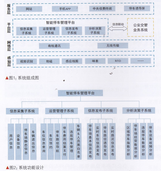 聯(lián)動(dòng)能力,實(shí)現(xiàn)公眾服務(wù)、行業(yè)監(jiān)管決策功能。該系統(tǒng)是停車(chē)與互聯(lián)網(wǎng)融合發(fā)展的典型應(yīng)用,是緩解城市停車(chē)問(wèn)題的有效手段之一。
