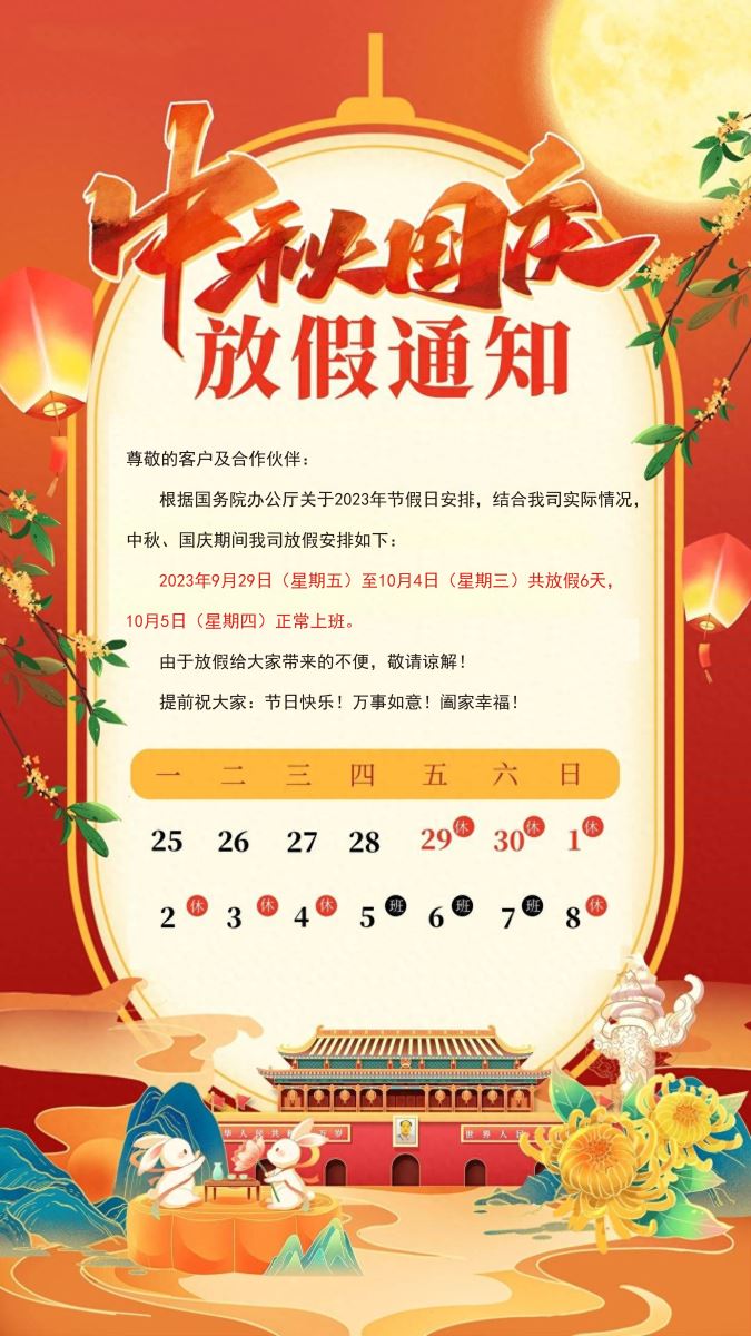 根據(jù)據(jù)國務院放假日安排通知,結合我司實際情況,中秋、國慶期間我司放假安排如下:
